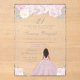 Cette élégante et glamour invitation d'anniversaire d'hiver présente une belle princesse aux cheveux bruns et à la peau foncée dans une robe de bal rose. Le texte combine écriture manuscrite et polices sans serif modernes pour un look élégant et sophistiqué. Les compositions florales, les flocons de neige et les confettis argentés créent un mélange parfait de rustique et de chic. Graphiques par www.etsy.com/uk/shop/SunflowerDayLove