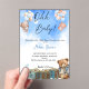 Cette charmante invitation au baby shower présente des teintes bleues douces et un ours en peluche, parfait pour célébrer l'arrivée de votre petit. Les empreintes de bébé apportent une touche personnelle, tandis que les ballons colorés créent une sensation amusante et légère. Idéal pour la célébration d’un bébé garçon, cette invitation apportera un sourire à vos invités et préparera le terrain pour un événement joyeux. Envoyez vos invitations avec style grâce à ce design adorable qui capte l'excitation et l'amour autour de l'arrivée à venir!