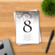 Revêtement photo moderne Mariage acrylique blanc Numéro de tableau. Téléchargez facilement votre photo qui se trouve derrière une superposition en dégradé blanc - qui se fond dans la couleur arrière - plan blanche. Personnalisez chaque numéro et chaque nom d'invité et ajoutez-les individuellement à votre panier.