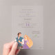 Apportez une touche de conte de fées à votre journée spéciale avec cet élégant faire-part de mariage acrylique avec Rapunzel et Flynn Rider. Le design allie romantisme fantaisie Disney à sophistication moderne, mettant en valeur vos noms, date mariage et détails de l'événement en lavande douce et polices grises sur une surface acrylique transparente et propre. En bas, Rapunzel et Flynn se tiennent côte à côte, ajoutant charme et magie à leurs personnages illustrés bien-aimés. Parfait pour les couples amateurs de Disney, cette invitation transforme vos détails de mariage en un souvenir digne de votre bonheur.