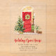 Bienvenue invités à votre réunion festive avec ces élégantes invitations de vacances en acrylique. Avec une étonnante aquarelle illustrant une porte rouge ouverte ornée d'une couronne festive, cette invitation capte la chaleur de la saison. Un sapin de Noël joliment décoré avec un cadeau emballé se trouve sur le devant du magasin, complété par un plante hivernal et un paquet de rondins. L'invitation est renouvelée pour révéler un arrière - plan rouge enneigé et cosy, ajoutant un charme supplémentaire. Personnalisez cette invitation acrylique avec vos détails de l'événement pour créer un invitation mémorable et accueillant qui donne le ton parfait pour votre maison de vacances.