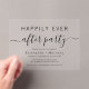 Invitation en acrylique chic pour votre réception de mariage ou après la fête. "Happily Ever After Party" est écrit dans un mélange de typographie simple et d'un script élégant avec des swashes.