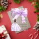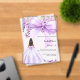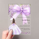 Un arrière - plan clair et transparent, décoré d'une grande lavande, d'un arc de couleur violet, de fleurs de glycine, de papillons et d'une fille en robe. Personnalisez et ajoutez un nom et des détails du parti.