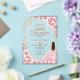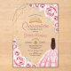 Invitations En Acrylique Robe rose or Quinceanera Floral