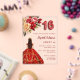 Invitations En Acrylique Robe rouge or fleurons rose clair Sweet 16