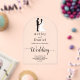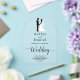 Cet élégant faire-part de mariage acrylique en arc noir et blanc est parfait pour un mariage moderne. Le design simple présente une élégante calligraphie noire et une illustration de mariée et de mariée sur un arrière - plan transparent clair.