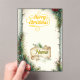 Step back in time and send warm holiday wishes with this beautiful vintage-inspired Christmas card. Featuring elegant gold calligraphy on a rustic parchment-style background, this design evokes the charm of a classic, old-world Christmas. The card is framed with watercolor pine branches, festive red berries, and a touch of winter snow, creating a cozy and nostalgic feel. Personalize the ancient scroll with your family name to make it a unique keepsake for your loved ones. Ideal for sending timeless season's greetings or as a special invitation to your holiday gathering.