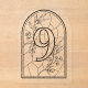 Faux Stained Glass Style Table Number Nine. Please note: This is a stained-glass inspired printed design, not real stained glass. Modern stained-glass inspired table number 9, featuring bold cathedral-style leading lines in a clean, minimalist layout. Line colour and background can be customised to match your wedding palette. Printed on clear acrylic. Sold as individual table numbers, as the table number within the design is non-editable. Perfect for modern, minimalist, black-and-white, or cathedral-inspired weddings.