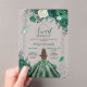 Sweet sixteen Emerald Green & Silver Anniversaire Acrylique Invitation Mis Quince Anos, 15e anniversaire