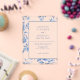 Cette invitation raffinée, bleue et blanche, présente une élégante bordure florale d'inspiration toile et un centre épuré et épuré pour vos détails mariages. La typographie magnifiquement équilibrée associe écriture gracieuse et écriture serif classique pour une sensation romantique et intemporelle. Entièrement personnalisable avec vos noms, date mariage et emplacement, ce design est parfait pour annoncer votre célébration avec style. Un choix idéal pour les mariages traditionnels, de jardin ou de la côte, ce qui en fait la première impression idéale pour votre journée spéciale.