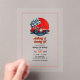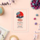 Faites une déclaration audacieuse avec cette invitation de fête d'anniversaire de voiture de course élégante imprimée sur de l'acrylique transparent élégant! Doté d'une voiture de course rouge classique et d'un drapeau à damiers sur fond de soleil rouge audacieux, cette invitation est entièrement personnalisable à tout âge. C'est la touche de qualité idéale pour les fans de course et les célébrations à grande vitesse.