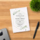 Faire-part de mariage moderne, propre et sophistiqué avec feuille de feuillage aquarelle verte et une fine ligne géométrique or.
