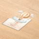 La conception de cette invitation à l'anniversaire de naissance présente un thème doux et fantaisiste. Au centre se trouve l'illustration d'un tigre assis dans un petit panier tressé attaché à une montgolfière pastel orange et crème. Le ballon flotte parmi des nuages fluides à l'aquarelle, créant un arrière - plan rêveur d'inspiration ciel. La palette de couleurs est douce et apaisante, avec des teintes pêche, bleu clair et blanc dominant la scène. Le texte est placé sous l'illustration, avec des polices joueuses et élégantes complétant le thème. L’aménagement général dégage un ton gai et doux, parfait pour la célébration d’un enfant.