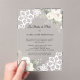 Mark a silver milestone with elegance and timeless charm. This white floral lace clear acrylic invitation combines delicate white lace motifs and soft florals with transparent acrylic for a refined and memorable keepsake.