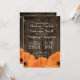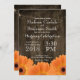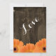 Invitations en bois rustiques de mariage de marguerites oranges de pays sur un arrière - plan foncé en bois de grange. Un style moderne de lettrage de typographie d'amusement. Ce sont parfaits pour un mariage campagnard rustique.