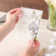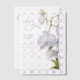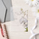 De belles fleurs d'orchidées blanches avec leurs pétales s'ouvrent en grand repos sous des bourgeons floraux pointant vers la calligraphie modifiable et des polices audacieuses qui reflètent l'occasion ainsi que des détails essentiels que les clients ont besoin de connaître sur votre occasion spéciale, Les fleurs sont dressées contre un arrière - plan transparent, transparent (revêtement de vellum) qui annonce sophistication et élégance à la fois aux arrière - plans simples et photo. Idéal pour un couple nouvellement engagé qui cherche à laisser ses amis et sa famille "sauver la date" pour leur grand jour.