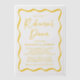 Invitation vos invités à une réunion pré-mariage élégante avec cette invitation à dîner de répétition moderne Yellow Wavy Frame. Doté d'un "Dîner de répétition" dans un script jaune fluide sur un simple arrière - plan en vellum, ce design crée un look élégant et contemporain. Une bordure ondulée jaune vif encadre les détails de votre événement, ajoutant une touche unique qui se démarque. Parfait pour les fêtes décontractées et formelles, cette invitation apporte un charme moderne à votre dîner de répétition tout en assurant tous les détails importants sont magnifiquement présentés.