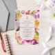 Cette superbe faire-part de mariage présente un design d'aquarelle fleurie audacieux avec des touches vives en rose, violet, orange et vert. L'élégante couverture en velours apporte une touche moderne et sophistiquée, avec un script raffiné et une typographie minimaliste. Parfait pour une célébration mariage romantique et artistique, cette invitation mêle élégance intemporelle et esprit créatif.