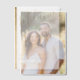 Cette faire-part de mariage étonnante est ornée d'un luxueux script doré superposé sur une feuille de vellum translucide, élégamment jumelée à un arrière - plan en photo pour une touche personnelle. La typographie moderne et intemporelle ajoute une esthétique raffinée, ce qui la rend parfaite pour des mariages sophistiqués, romantiques et formels.