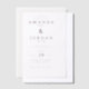 This elegant wedding invitation features a minimalist design with centered text on a clean white background, creating a sophisticated and formal appearance. The black serif typography is crisp and clear, emphasizing the names and details of the event in a balanced layout. With ample negative space, this classic style focuses solely on the textual elements, conveying an atmosphere of simplicity and elegance perfect for a memorable celebration. Ideal for couples seeking a timeless and understated look, this invitation sets the tone for a refined wedding experience.