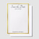 Save the Date est dans un élégant script noir près du haut. Ce revêtement en velours blanc et or faire-part de mariage peut être personnalisé avec la date du mariage ainsi que les noms de la mariée et du marié. La fausse bordure en or n'est pas faite de papier peint.