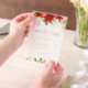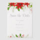 Ce classique mariage de Noël rouge et vert Save the Date présente des fleurs poinsettia vives en bas à droite de votre invitation, des baies saintes et de la verdure en haut à gauche. Une invitation festive et claire à la transparence botanique pour un mariage de vacances avec un script élégant.