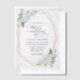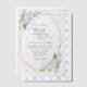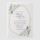 Invitations amis et famille dans le style et donner le ton pour votre journée spéciale avec ce faire-part de mariage charmant. Le design présente des fleurs d'aquarelle bleu et blanc, de la verdure, des confettis dorés et un cadre doré.