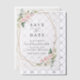 Invitations amis et famille dans le style et donner le ton pour votre journée spéciale avec ce charmant enregistrer la carte de date. Le design présente des fleurs d'aquarelle rose et blanche, de la verdure, des confettis dorés et un cadre doré.