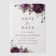 Invitations amis et famille dans le style et donner le ton pour votre journée spéciale avec ce charmant enregistrer la carte de date. Le design présente des fleurs d'aquarelle prune violette et de la verdure.