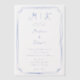 Cette élégante salle de mariages moderne ou nuptiale présente un design de texte simple bleu français qui dégage un style minimaliste. Ajoutez vos initiales ou votre monogramme pour les rendre complètement vôtres.