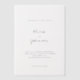 Ce faire-part de mariage au design épuré et minimaliste est orné d'un arrière - plan blanc, d'une typographie moderne et d'un script manuscrit pour les noms du couple. L'avant met l'accent sur la simplicité et l'élégance