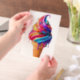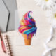 SlipperyJoe's vibrante crème glacée cone nourriture classique gaufre base cone dessert exude énergie bonheur tourbillonnant mélange de teintes arc-en-ciel délicieux diverses couleurs saupoudrer brillant légèrement fondu texture délicieusement indulgent cadeaux gay pride LGBTQIA rose vif orange vif jaune vif bleu vif bleu vif violet intense