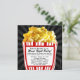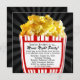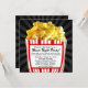Grand sac de maïs éclaté, marqué avec votre texte fait sur commande. Invitations faites sur commande de partie impressionnante de soirée cinéma, en le noir, le blanc, le jaune et le rouge. La boîte rayée rouge et blanche à maïs éclaté avec le maïs éclaté jaune et les rayons de la lumière noirs et blancs à l'arrière-plan customisent le baquet de maïs de bruit avec votre information de partie. Fait une grande, unique invitation de partie pour la soirée cinéma adulte adulte de voisinage, ou le criblage de film d'enfants ou n'importe quelle occasion !