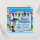 Invitation baby shower Fiesta avec un petit garçon mignon portant une tenue sombrero bleu foncé sur un arrière - plan de serape multicolore festif. Ces adorables invitations de bébé mexicaine Fiesta bébé douche sont facilement customisées pour votre événement en ajoutant simplement vos détails.