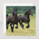 Chevaux frisons galopants dans un grand domaine.