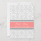 Invitations de partie de fiançailles dans le motif vintage floral classique élégant et romantique de rose de pêche, gris et blanc de damassé. Entièrement personnalisable avec vos détails de partie de fiançailles. En outre disponible dans un éventail d'assortir des produits de mariage.