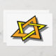 Pour vous, fête hanoukka, ce design est parfait. C'est une étoile hanoukka. Le design a l'étoile sur un angle avec une partie de l'étoile étant une couleur orange et l'autre partie étant jaune. C'est un look très efficace. Cette étoile hanoukka a l'air superbe sur ces invitations