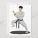 Frappez une magnifique pose de karaté comme celle-ci. Cette personne est en tenue karaté et ils sont dans une pose karaté. Cette personne karaté porte une ceinture noire. Ce design de pose karaté a l'air très bien sur ces invitations