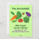 Avec des légumes vectoriels tirés de légumes gais, dont une carotte, des pois, du radis, du poivre, de l'aubergine et de la tomate, cette invitation serait un excellent moyen de promouvoir un stand de produits, un marché agricole, une foire de comté ou tout autre événement agricole.