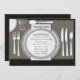 Jolis, élégants nappe de damassé et modèle noirs d'invitation de dîner de répétition de mariage de couvert de porcelaine d'argent. Vous pouvez facilement customiser cette invitation élégante de dîner de répétition avec vos détails d'événement dans le style de police, la couleur et les mots de votre choix.