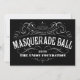 Invitations noires et blanches bilatérales de boule de mascarade. Customisez votre information de partie sur l'avant et le dos.