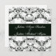 Ces invitations magnifiquement conçus vous apporteront une touche d'élégance à votre journée spéciale. Un design noir et blanc parfaitement vintage présente un arrière - plan blanc à la texture noire damassée. Les Invitations sont recouverts de deux côtés, ce qui vous permet d'avoir suffisamment d'espace pour personnaliser et créer vos invitations à votre style. Le côté arrière de l'invitation est de couleur blanche. Les deux côtés sont conçus avec un modèle de rédaction préfabriqué vous permettant d'ajouter facilement tous vos détails et informations sur les invitations.