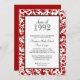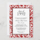 Une invitation rouge et noire élégante de réunion de classe, comportant un motif formel de damassé de remous. Perfectionnez pour une invitation de réunion d'invitation ou de classe de réunion de classe de lycée !