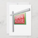 Cette conception est d'une enseigne ouverte. Le genre que vous auriez si vous vendiez votre maison. Le panneau ouvert est rouge et blanc et est attaché à un billet. Cette conception de panneaux de portes ouvertes est très intéressante pour ces invitations