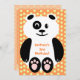 Les invitations adorables de fête d'anniversaire pour des enfants comporte un arrière - plan orange avec le pois léger de vert de chaux. Est au premier plan un grand, espiègle ours panda noir et blanc avec un grand sourire. L'ours panda s'assied et dans le ventre blanc le secteur du panda est pièce pour votre texte, qui peut être customisé. Le verso de l'invitation a la même conception orange et verte de point de polka dans des tons amortis avec un secteur plus sombre pour votre texte qui est dans la police de vert de chaux. le texte peut être customisé pour adapter à vos besoins. Les enfants aimeront cette conception adorable d'ours panda, particulièrement tels qui sont des amoureux des animaux !