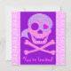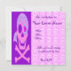 Cartes d'invitation recto verso personnalisées. Front a personnalisable "Vous êtes invité". Le dossier contient des informations sur l'invitation: entrez le titre, la date, l'heure, l'emplacement et des informations supplémentaires ou un message personnel. Crâne rose et arêtes croisées, avec un carré de lavande au coeur rose, et un bandanna de lavande au motif cardiaque. Un crâne de pirate rose.