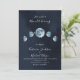 invitations Phases de la Pleine Lune céleste et Étoiles Jolies lunes d'éclipse totale et étoiles célestes aquarellées pour un bal, une demande en mariage ou des invitations de mariage. Idéal pour une soirée près d'une pleine lune. Fond aquarelle bleu nuit foncé avec des étoiles éparpillées. Besoin d'aide pour la mise en page, envoyez-moi simplement un email avec le lien à tkatz@me.com Demandez des articles assortis si nécessaire.
