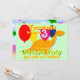 Invitation tous vos amis à votre fête d'anniversaire cool dinosaure joyeuse avec ces grandes invitations personnalisables avec un joli et adorable petit dessin animé orange Diplodocus avec un texte personnalisable : "Yourname" a 3 ans, nous avons une fête des dinosaures et vous êtes invités ! A l'arrière, une grande fête d'anniversaire de dinosaures avec T-Rex violet, Diplodocus orangé, Tricératops jaune et Stegosaurus bleu dans un joli paysage pré-historique en pierre avec des arbres, des montagnes et du vulcano avec des étoiles de couleur et un texte personnalisable : Date de l'événement, heure de la fête, adresse de la partie et R.S.V.P. à et numéro de téléphone. Cette invitation colorée à la fête des dinosaures est entièrement personnalisable, ajoutez & personnalisez facilement avec votre(s) texte(s) et image(s)! Heureux invitations de la fête des dinosaures pour les petits fans de dinosaures !