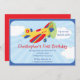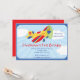 Commencez votre fête anniversaire de enfant tout de suite avec notre mignonne invitation à l'anniversaire de l'avion de pilote avec le plus mignon petit avion rouge, jaune, bleu et vert volant dans le ciel sur un arrière - plan bleu avec des nuages avec une bordure bleue. C'est mignon pour ta fête d'anniversaire de petits pilotes. Visitez notre boutique pour voir d'autres invitations à la fête d'anniversaire de monstre mignons et des notes de remerciements assorties, des autocollants et des timbres-poste. © Dessins Blackleaf