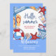 Une invitation sur le thème de l'été avec des éléments de plage en rouge, blanc et bleu. Présentée comme une invitation pour un enterrement de vie de jeune fille, elle est parfaite pour toutes les célébrations estivales. (<a href='https://www.freepik.com/free-vector/hellos-summer-background-with-quote_1168985.htm'>Conçue par Freepik</a>). <br/><br/>La carte est facile à personnaliser avec votre texte, police, couleur de police, options de forme de papier et choix parmi six types de papier.<br/><br/>Pas exactement ce que vous cherchez ? Tous nos produits peuvent être conçus sur mesure pour répondre à vos besoins sans frais supplémentaires.<br/><br/>Contactez-nous simplement à heartfelthelper@gmail.com.<br/><br/>Produits coordonnés disponibles : demandez-nous !